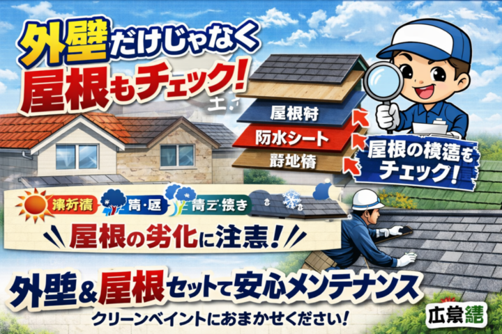 広島市で外壁塗装をすぐにお申込みされたい方 お電話でのお申込み ⇒ 0120-272-800ホームページからお申込み ⇒ お問い合わせフォーム※お気軽にご相談ください❕ 広島市にお住まいのみなさま🏡こんにちは…😊 【 地域に密着して 創業39年 】外壁塗装・屋根塗装専門店クリーンペイントです❗ 🏡 外壁だけで安心していませんか?実は、屋根の方が傷みやすいんです。 最近、「外壁の色がくすんできたなぁ…」「そろそろ塗り替えの時期かも」と思い始めている方も多いのではないでしょうか? 外壁のメンテナンスはお家の美観や耐久性を保つためにとても大切です。でも、ちょっと待ってください!⚠️その塗装、屋根のことも一緒に考えていますか?実は、意外と見落とされがちなのが「屋根のメンテナンス」なんです。 実は、屋根はただ「瓦やスレートがのっているだけ」ではありません。その下には、雨水を防ぐための“ルーフィング”、そして屋根全体を支える“野地板”など、いくつもの層が重なって建物を守っているんです。 ◎屋根の構造ってどうなってるの? 屋根は、上から順に以下のような層で構成されています👇 1️⃣ 屋根材2️⃣ ルーフィング(防水シート)3️⃣ 野地板(のじいた) 層の名前 位置 主な役割 屋根材 一番上 雨・風・紫外線から家を守る ルーフィング(防水シート) 屋根材の下 雨水の侵入を防ぐ最終防衛ライン 野地板(のじいた) 一番下(構造部) 屋根全体を支える土台 それぞれが異なる役割を持ち、ひとつでも劣化すると雨漏りや構造の不具合につながることもあります。 ◎屋根は、外壁以上に過酷な環境にさらされています🌞🌧️❄️ 屋根は建物のてっぺんにあるため、毎日ダイレクトに紫外線・雨・風・雪・気温差などのダメージを受けています。 例えば… 🌞【紫外線】→ 塗膜が劣化し、屋根材がむき出しに 🌧️【雨風】→ 塗膜が剥がれ、ひび割れが進行 🌡️【温度差】→ 膨張・収縮を繰り返し、反りや割れの原因に こういった影響で、屋根は外壁よりも劣化のスピードが早いこともあるんです。それなのに、「外壁はキレイに塗り替えたけど、屋根はそのまま…」というケース、実は少なくありません😢 ◎塗装を放置すると、どうなる? 屋根塗装は「見た目をきれいにするため」と思われがちですが、本来の目的は“屋根材を保護して、下のルーフィングや野地板を守ること”にも繋がります!! 塗装を長期間放置すると、屋根材が紫外線や雨に直接さらされ、ひび割れや反りが進行。 そこから雨水が入り込み、やがてルーフィングが傷み、最終的には屋根の葺き替え工事が必要になることもあります。になることもあります。 ルーフィングの交換は、屋根を一度すべて剥がす「葺き替え工事」が必要になるため、費用も大掛かりになってしまうんです。 定期的な屋根塗装は、こうした大きなトラブルを防ぐための“予防策”なんですね✨ 分かりやすいように表にしましたのでご覧ください👀👇 状態 屋根材の劣化 ルーフィングへの影響 修繕内容 定期的に塗装している 表面の保護が維持される ルーフィングが長持ちする 塗装のみでOK 塗装を放置している ひび割れ・反りが発生 雨水が侵入し、劣化が進む 葺き替え工事が必要になることも ◎こんな方は、屋根塗装の検討をおすすめします! ✅ 築10年以上が経っている✅ 前回の塗装から10年近く経過している✅ 外壁だけでなく、屋根の色あせやコケも気になってきた✅ 一度も屋根の状態を確認したことがない✅ 雨漏りが心配になってきた これらに当てはまる方は、まずは屋根の状態をプロにチェックしてもらうことをおすすめします🔍 点検・お見積もりは無料で行っており、チェックすることで我が家を知れるのでとてもいい機会だと思います。 ◎外壁塗装を考えるなら、屋根も一緒にチェックを!🔧 屋根は、普段なかなか目にする機会がないからこそ、劣化に気づきにくく、気づいた時には手遅れ…というケースも少なくありません。「外壁だけじゃなく、屋根も一緒にやっておけばよかった…」と後悔しないためにも、外壁塗装を考えるこのタイミングで、ぜひ屋根塗装もご検討ください😊 弊社は点検・お見積もりは無料で行っており、チェックすることで我が家を知れるのでとてもいい機会だと思います 外壁も屋根も、住まいを守る大切なバリア。ダブルでメンテナンスすることで、お家の寿命はグッと延び、これからも安心して暮らすことができます🏡💖 わたしたちクリーンペイントでは、外壁・屋根の無料診断も実施中です!📷✨気になる方は、ぜひお気軽にお問い合わせください! 🏠 広島市・廿日市市で外壁塗装・屋根塗装なら、地域密着・創業39年のクリーンペイントにお任せください!あなたの大切なお家を、これからもずっと守るお手伝いをいたします😊 お電話でお問い合わせはこちら WEBで来店予約はこちら お見積り依頼はこちら https://ch9400.jp/blog/60824/ https://ch9400.jp/blog/60789/ https://ch9400.jp/blog/50090/ 本記事の解説