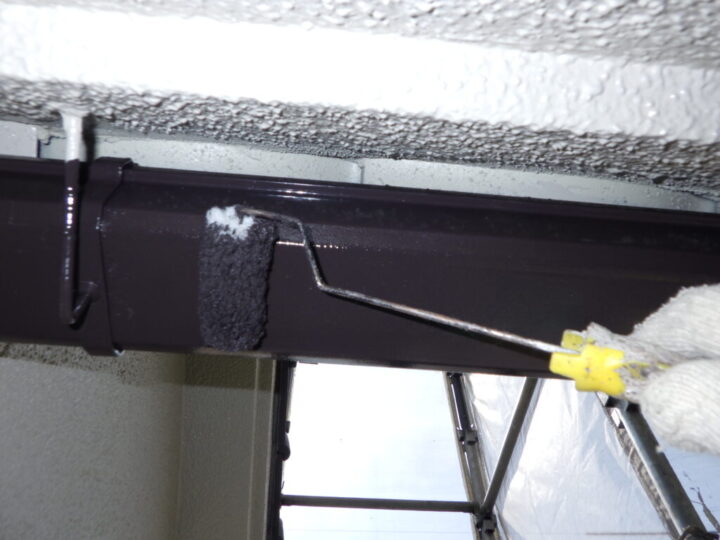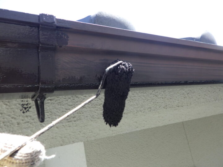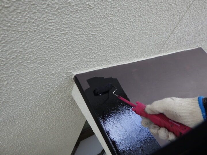 塗り残しなどがないか確認しながら、丁寧に上塗り二回目を行います。⑥鉄部・木部上塗り 一回目