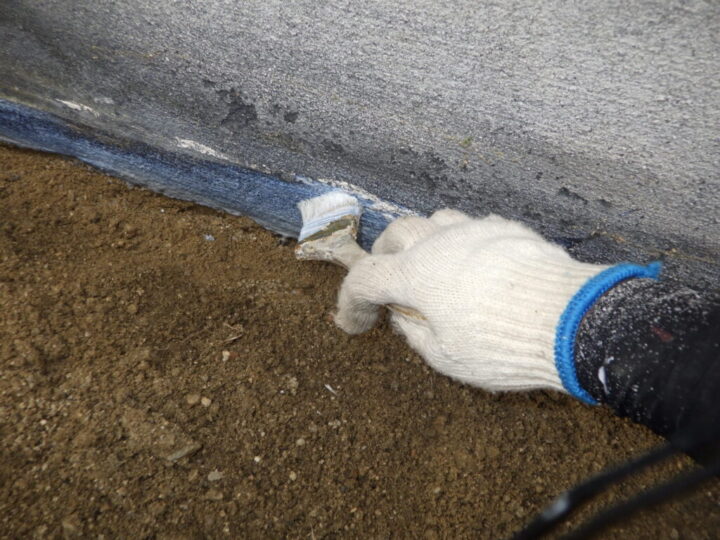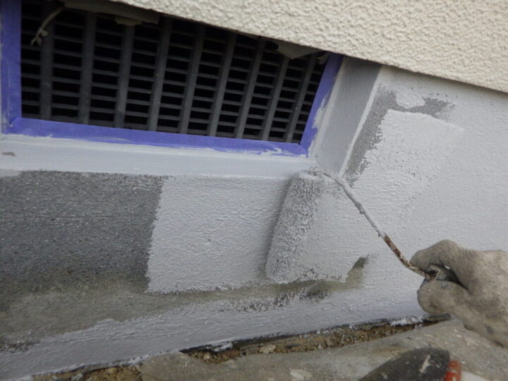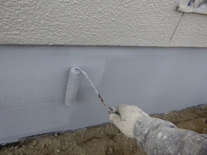 基礎の下塗りを行います。⑨基礎巾木上塗り 一回目