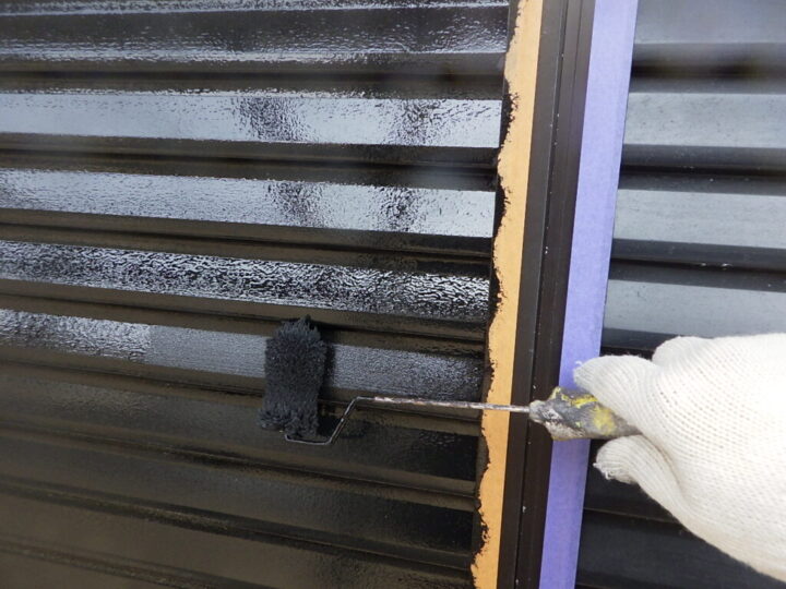 初めにケレン清掃・錆止めを施した鉄部・木部の上塗りを行います。