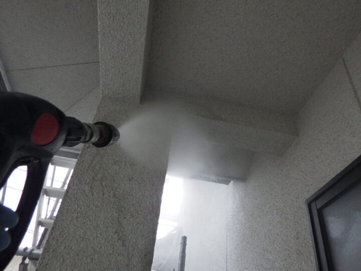 業務用の高圧洗浄機で、外壁や屋根に付着した汚れをキレイに洗い流します。