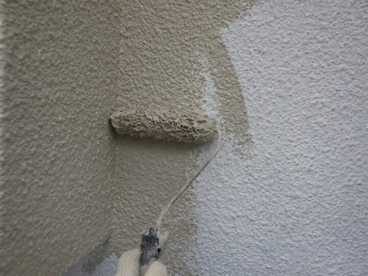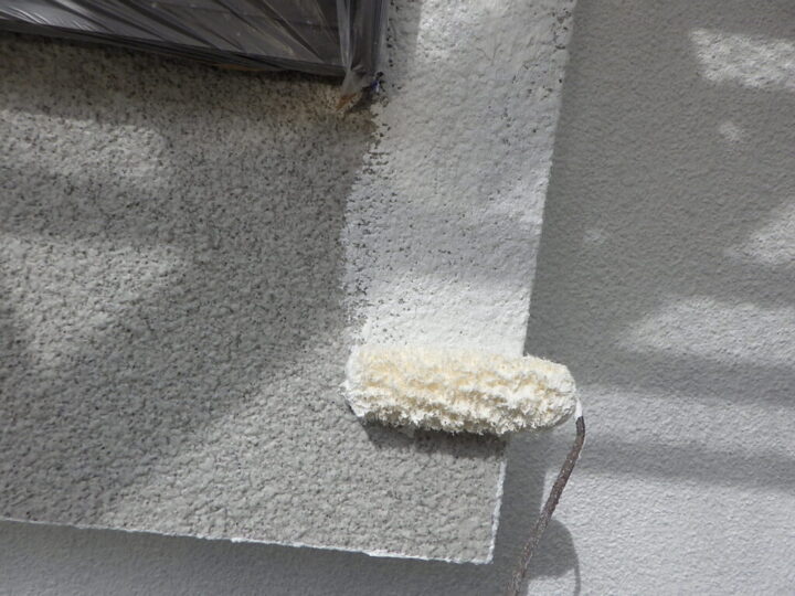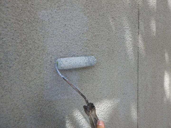 モルタル壁専用の下塗り材で二回目の下塗りを行います。