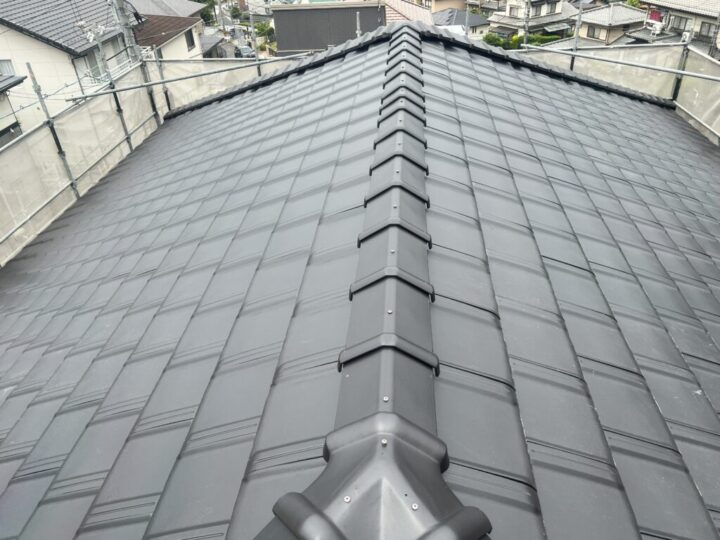 ルーフィング貼り付けた上部に、洋瓦(スーパートライ)の施工をします。