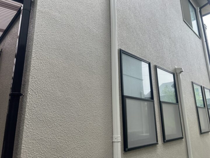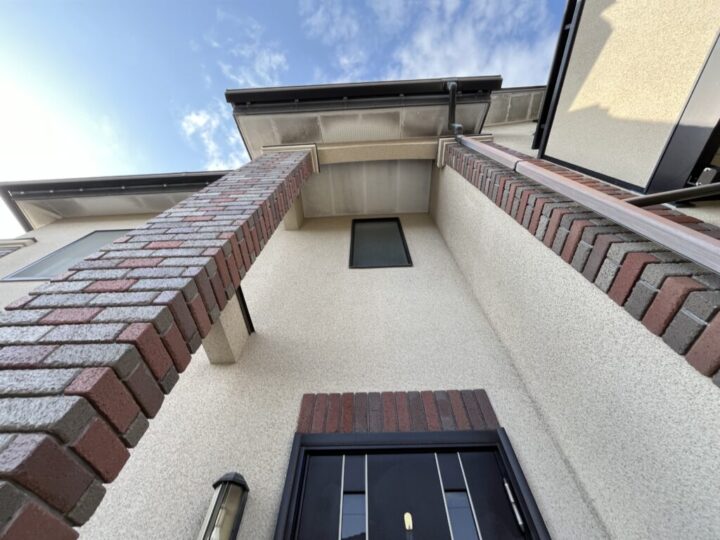 外壁材がモルタル壁だった為、モルタル壁に合う材料をご提案させていただき、最終的には外壁をどのランクの塗料で塗装するか悩まれていましたが、一番人気のプレミアムシリコンでの塗装工事をさせていただきました。