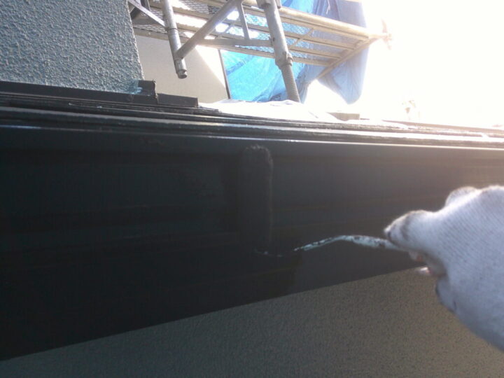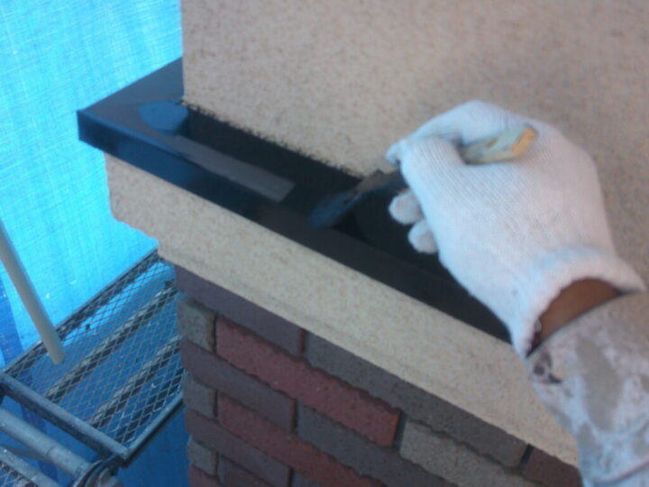 初めにケレン清掃・錆止めを施した鉄部・木部の上塗りを行います。