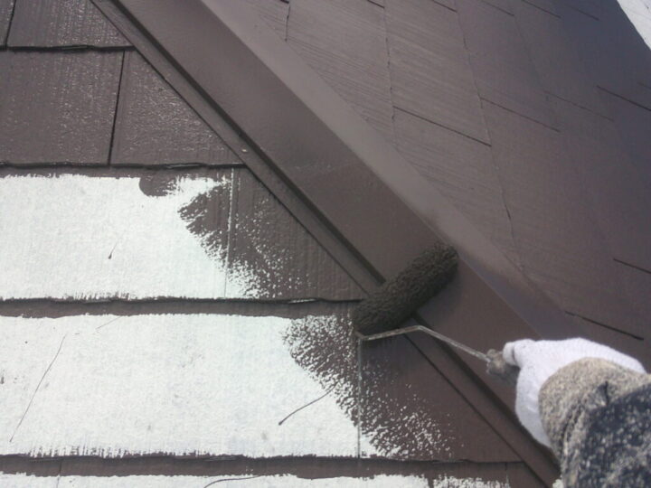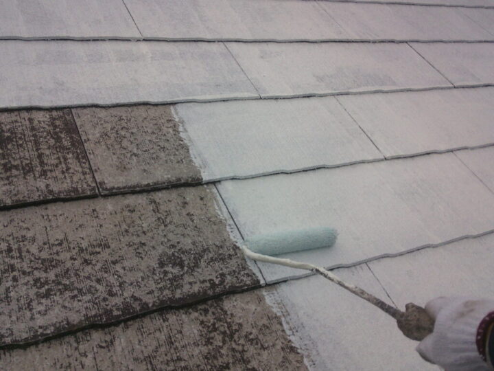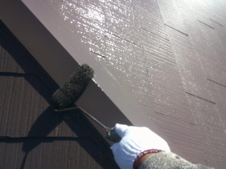 上塗り二回目を行い、屋根の塗装は完了になります。