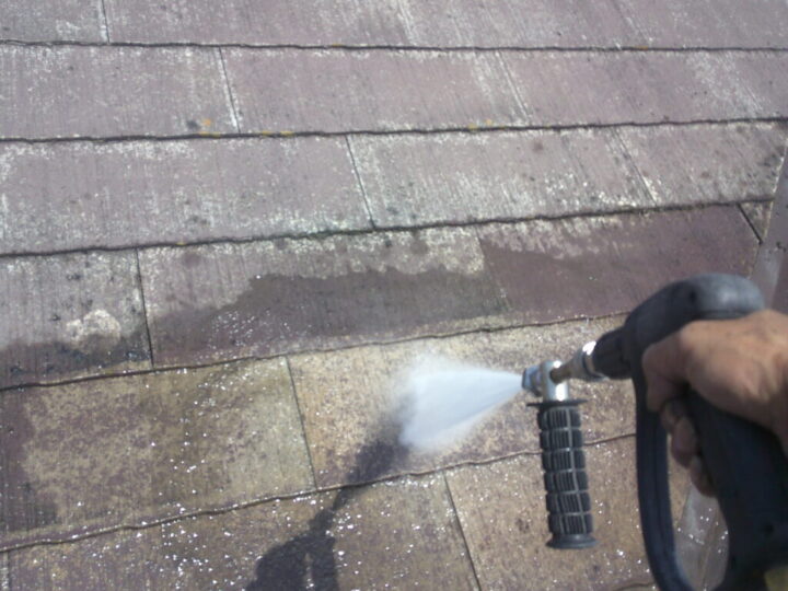 業務用の高圧洗浄機で、外壁や屋根に付着した汚れをキレイに洗い流します。