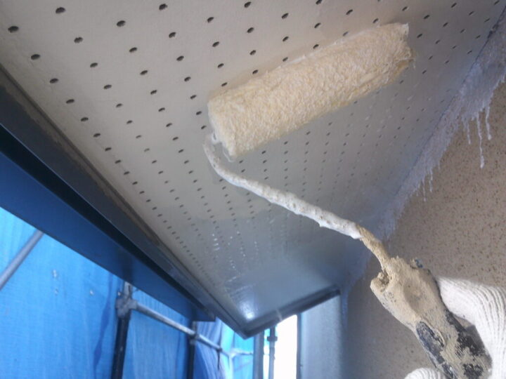 塗り残しなどがないか確認しながら、丁寧に上塗り二回目を行います。