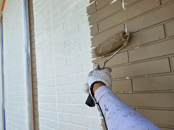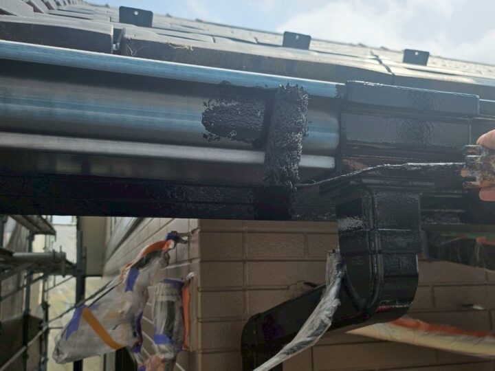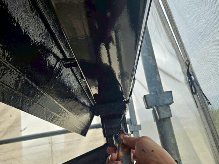プロの技で、表面を平らにきれいに整えてシーリング工事は完了です。