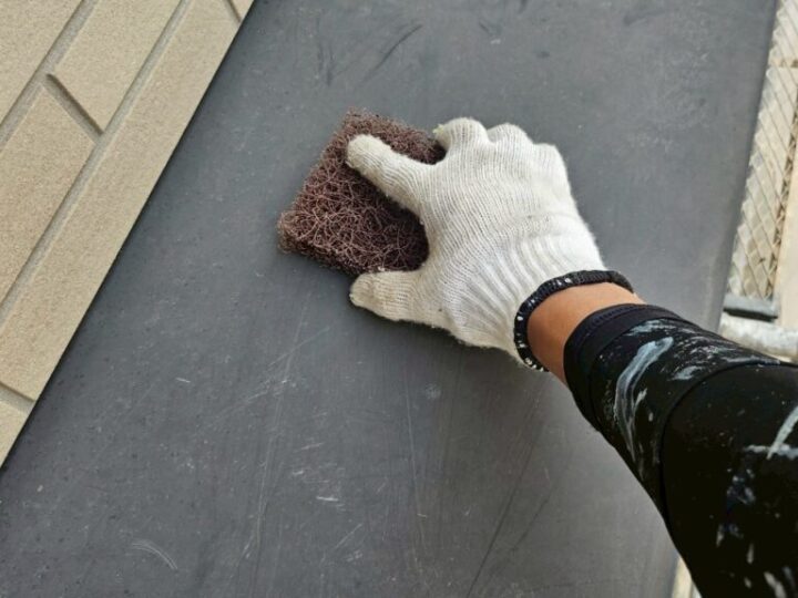 初めにケレン清掃・錆止めを施した鉄部・木部の上塗りを行います。