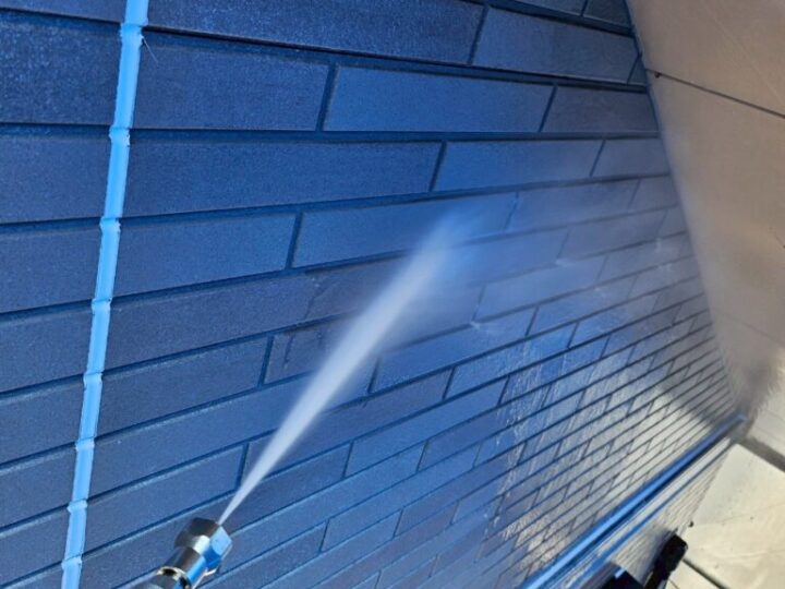 業務用の高圧洗浄機で、外壁や屋根に付着した汚れをキレイに洗い流します。