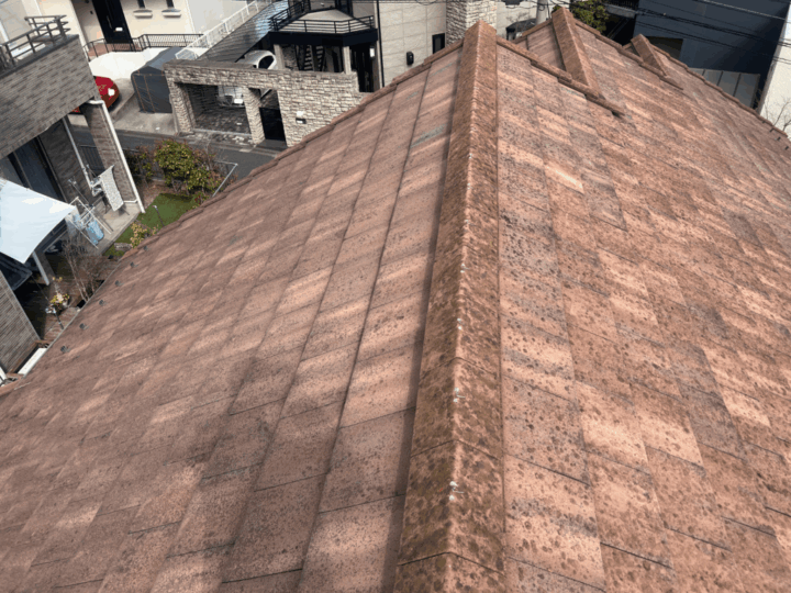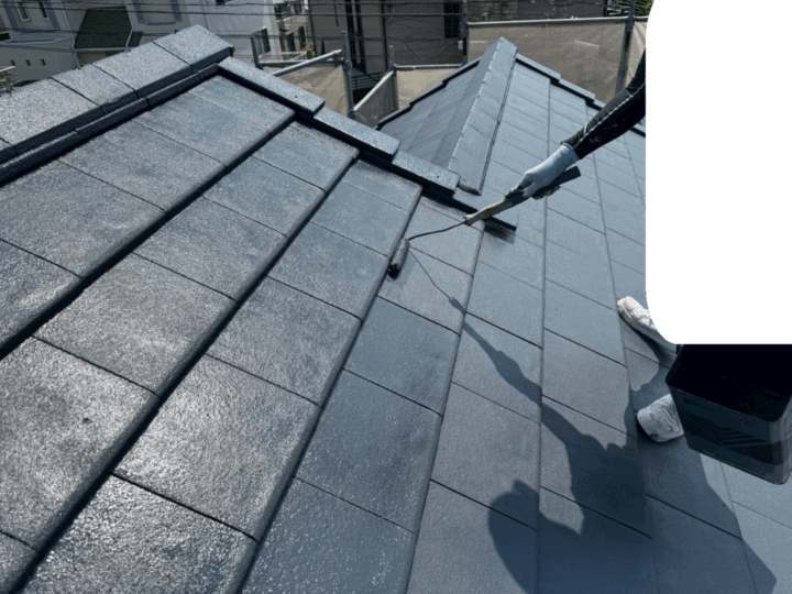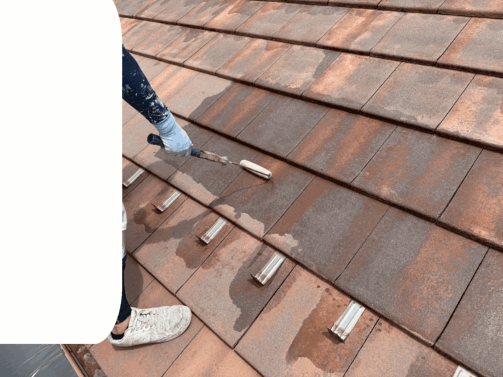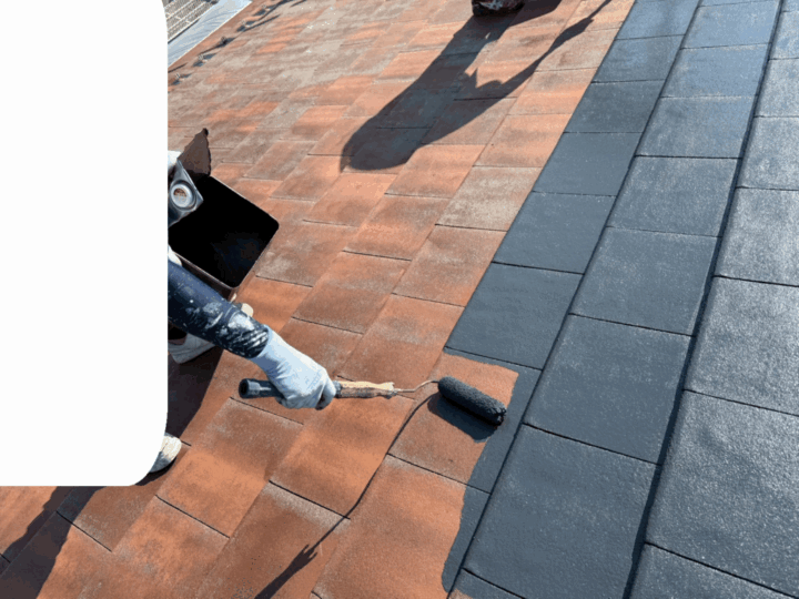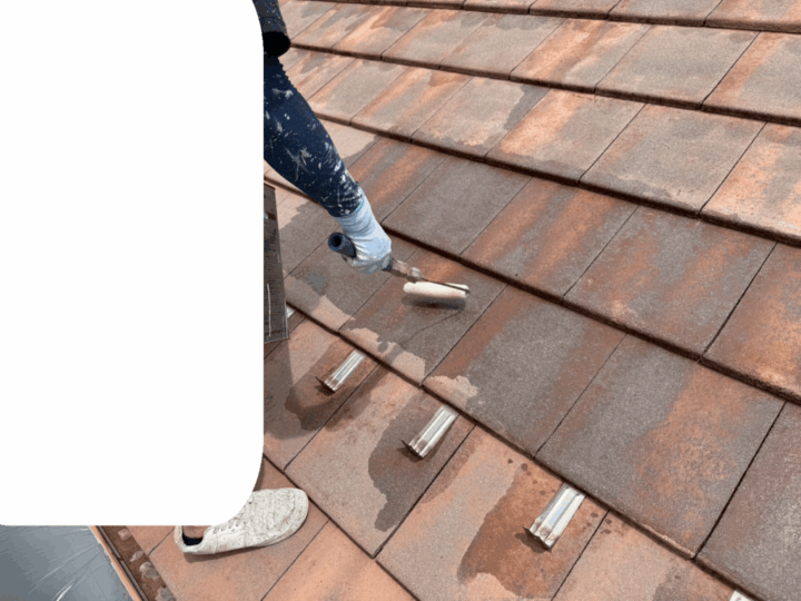 モニエル瓦を使用した屋根のため、下塗りは二回行います。