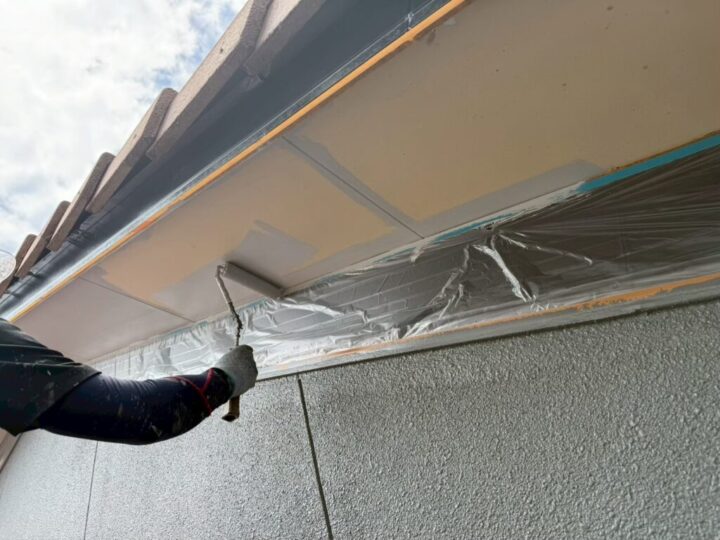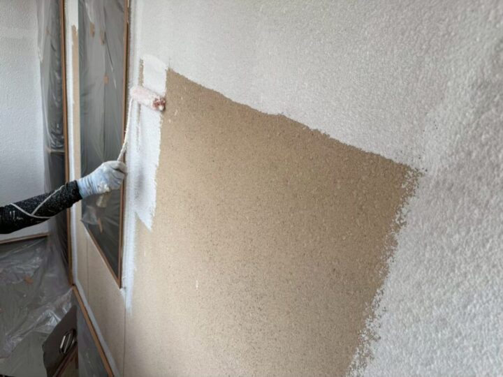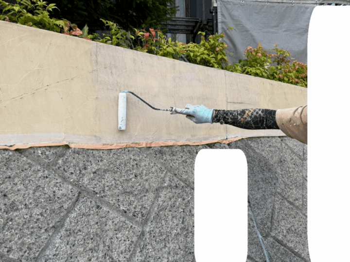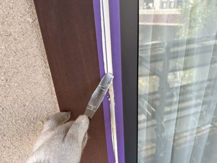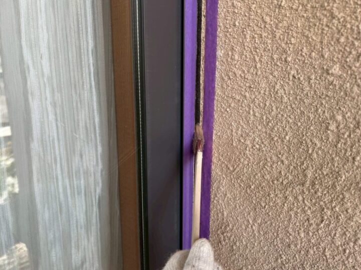 既存シーリングを撤去した個所を養生テープで囲い、プライマーを塗布します。