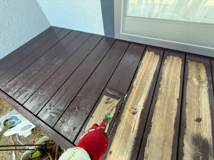 初めにケレン清掃・錆止めを施した鉄部・木部の上塗りを行います。