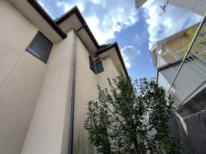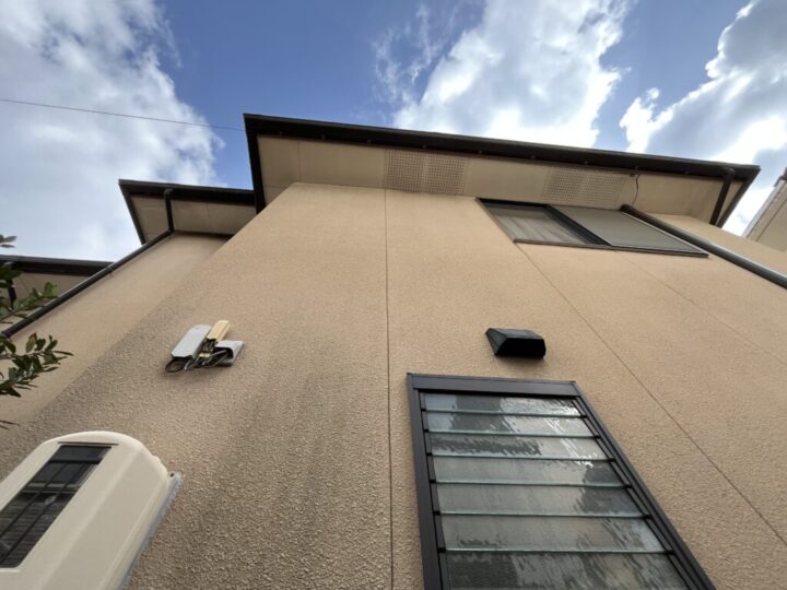 日当たりの悪い外壁面のカビ・コケが気になるとのことでしたので、高い耐候性と低汚染性のラジカル塗料をご提案させていただきました。