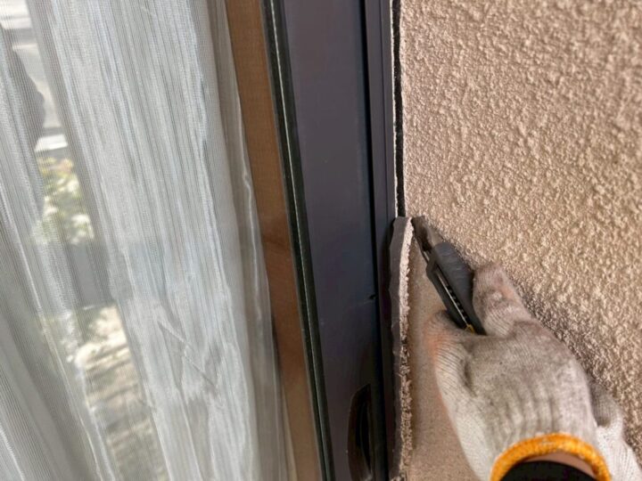 プロの技で、表面を平らにきれいに整えてシーリング工事は完了です。