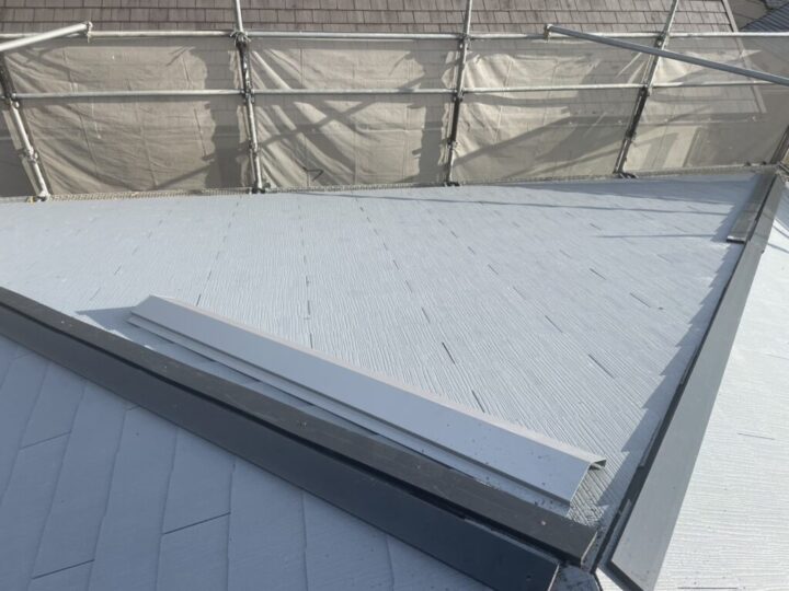 東区中山新町は日当たりの影響を受けやすい住宅地のため、屋根全体に紫外線による色あせや塗膜の劣化が確認できました。