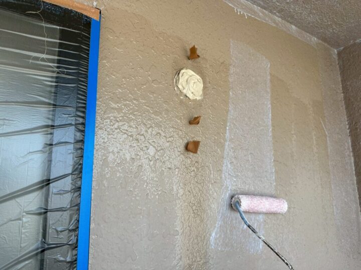 モルタル壁専用の下塗り材で二回目の下塗りを行います。