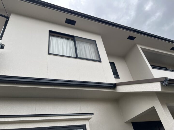 外壁の汚れや、カビコケなどを特に気にされていらっしゃったため、汚れにくい性質の塗料で濃い色での塗り替えをご提案させていただきました。