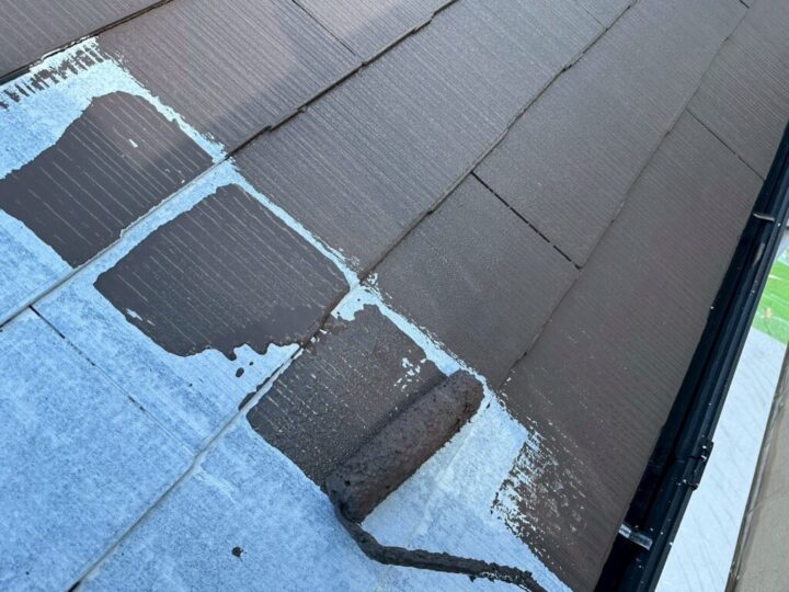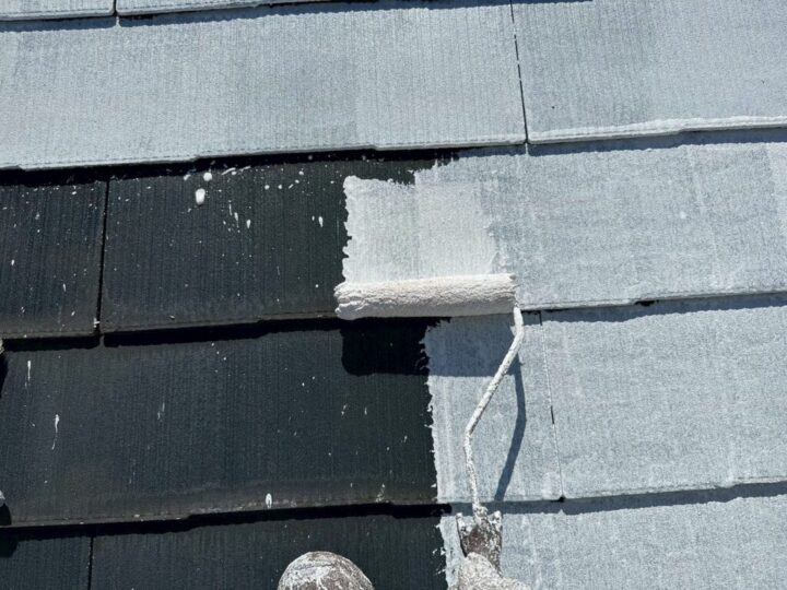 上塗り二回目を行い、屋根の塗装は完了になります。