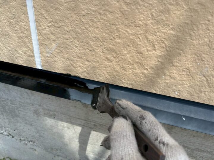 初めにケレン清掃・錆止めを施した鉄部・木部の上塗りを行います。