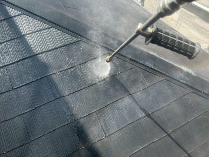 業務用の高圧洗浄機で、外壁や屋根に付着した汚れをキレイに洗い流します。