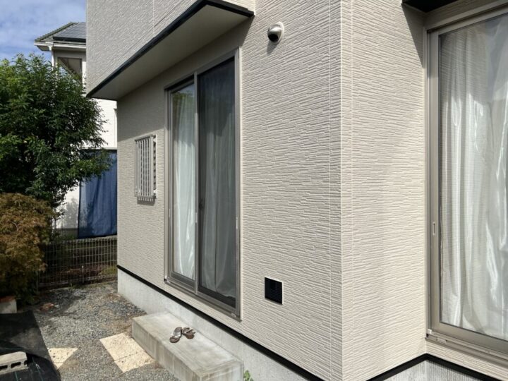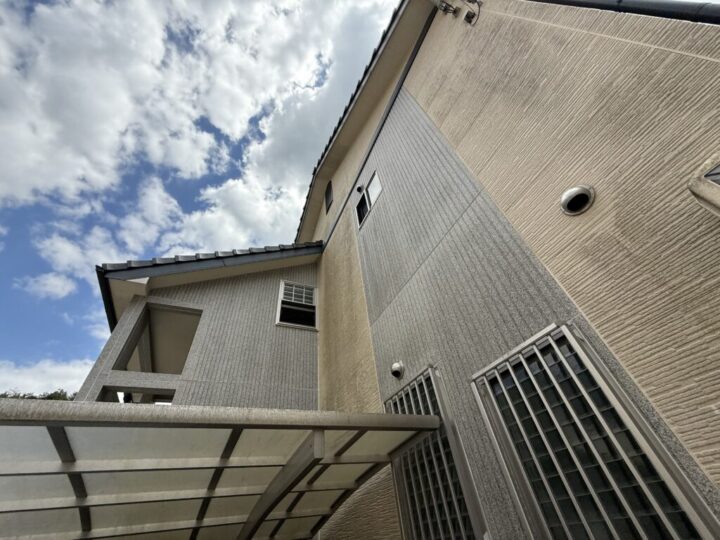 また、外壁を手で触ると白い粉が付くチョーキング現象も確認でき、塗膜の防水性能が徐々に低下しているサインが見受けられました。