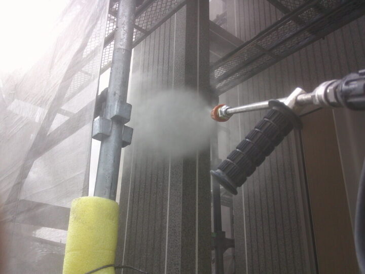 高圧洗浄は塗料の密着を高め、外壁塗装を長持ちさせるために非常に重要な工程です。
