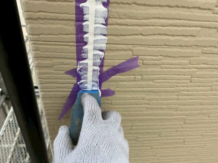 これにより、雨水の浸入を防ぎ、外壁の耐久性を高める防水工事を行っています。